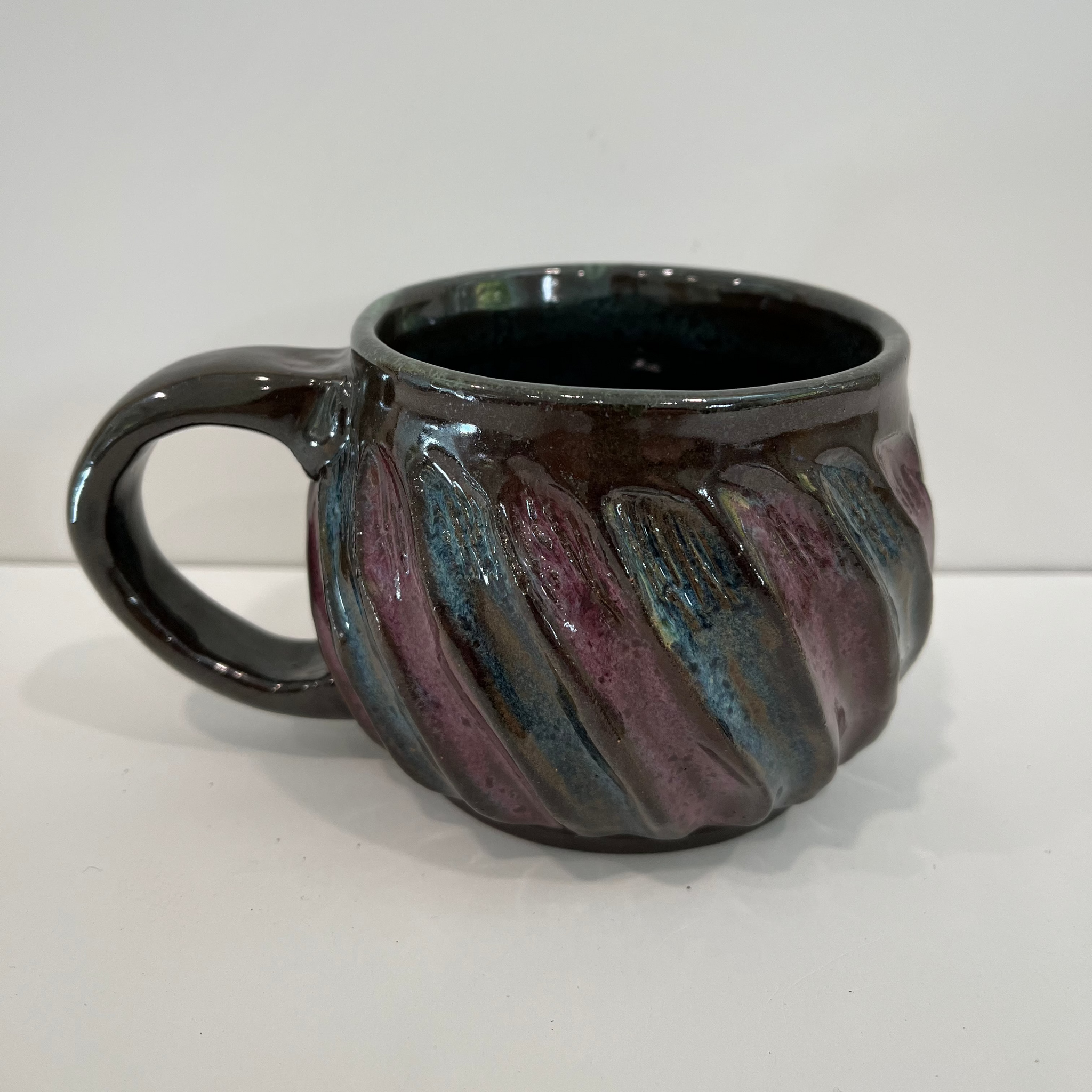 Swirl Pottery Mug measures approximately 3.375" x 3.375" x 3" tall.